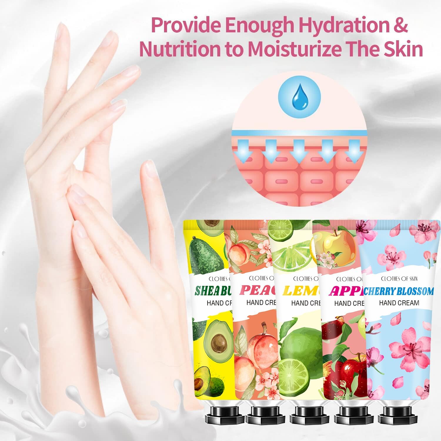 10 Pack Natural Scented Hand Lotion: 10 PLANT FRAGRANCE: Including Rose,Lavender,Gardenia,Pomegranate,Vanilla,Peach,Shea Butter,Lemon,Apple,Cherry Blossom fragrance hand cream. Scent does not repeat a week, you can apply different scented hand creams every day to keep you in a happy mood, and you can also give your family and friends the scent they like