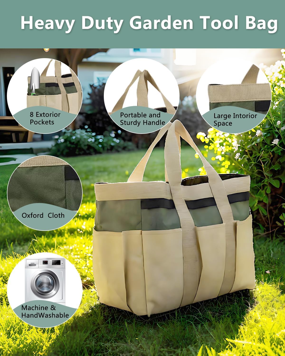 Strength Large Capacity Organizer Bag: The 13.8″ x 11.8″ size garden tool bag provides plenty of storage space for gardening sets. 8 external pockets and an elastic cord better expand the capacity for more plant tools. Made of high-quality 600D Oxford cloth lining, soft and durable. With or without tools, the bag can easily stand up on its own.