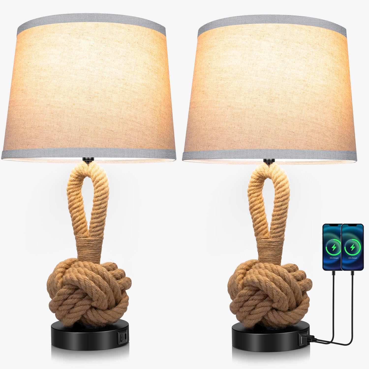 Hand-woven Rattan Lamp: Our boho nightstand lamps set of 2 are 22″ tall, and the entire lamp body is made of a sturdy metal frame wrapped in natural thick hemp rope rattan. Equipped with the 12” wide linen lampshade, these boho lamps for night stands can effectively soften the light. Each lamp’s rattan is handcrafted by expert craftsmen, making these bedside lamps a unique artwork. This boho table lamp with usb port not just being used for daily lighting, but also a eye-catching decoration for your home