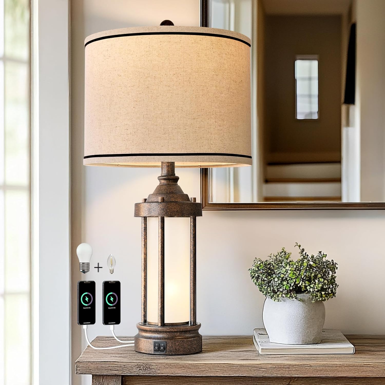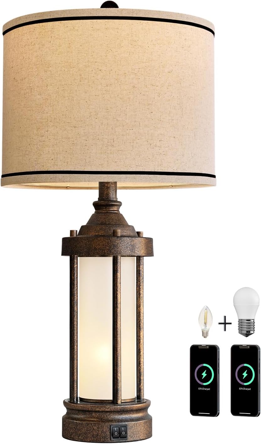 Farmhouse Table Lamp: This Industrial Nightstand Lamp fatures a country-style lantern design with a vintage look and simple aesthetic, making it an excellent addition to home decor. Its unique design and soft light create a warm and romantic atmosphere in living rooms, bedrooms, etc