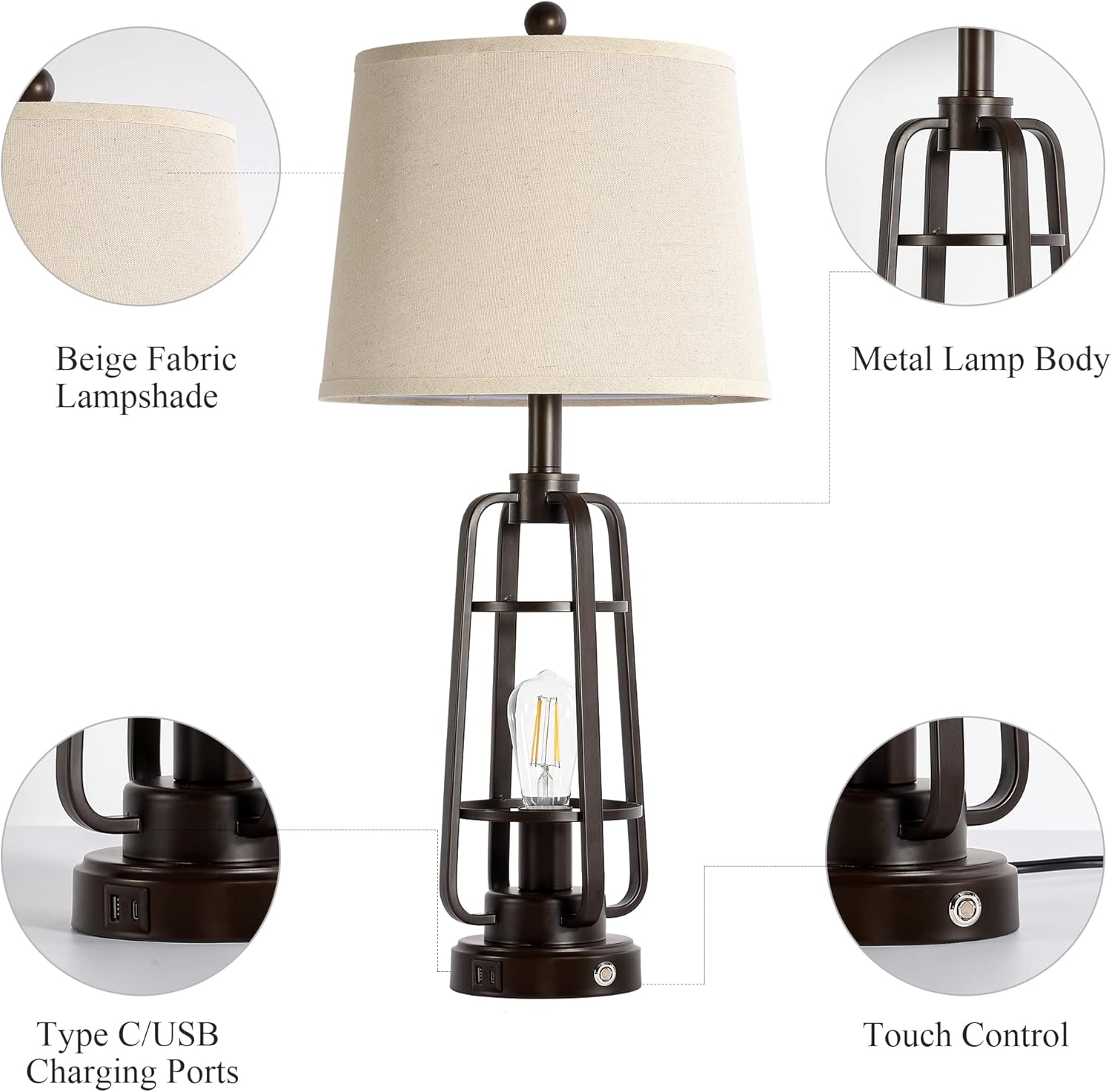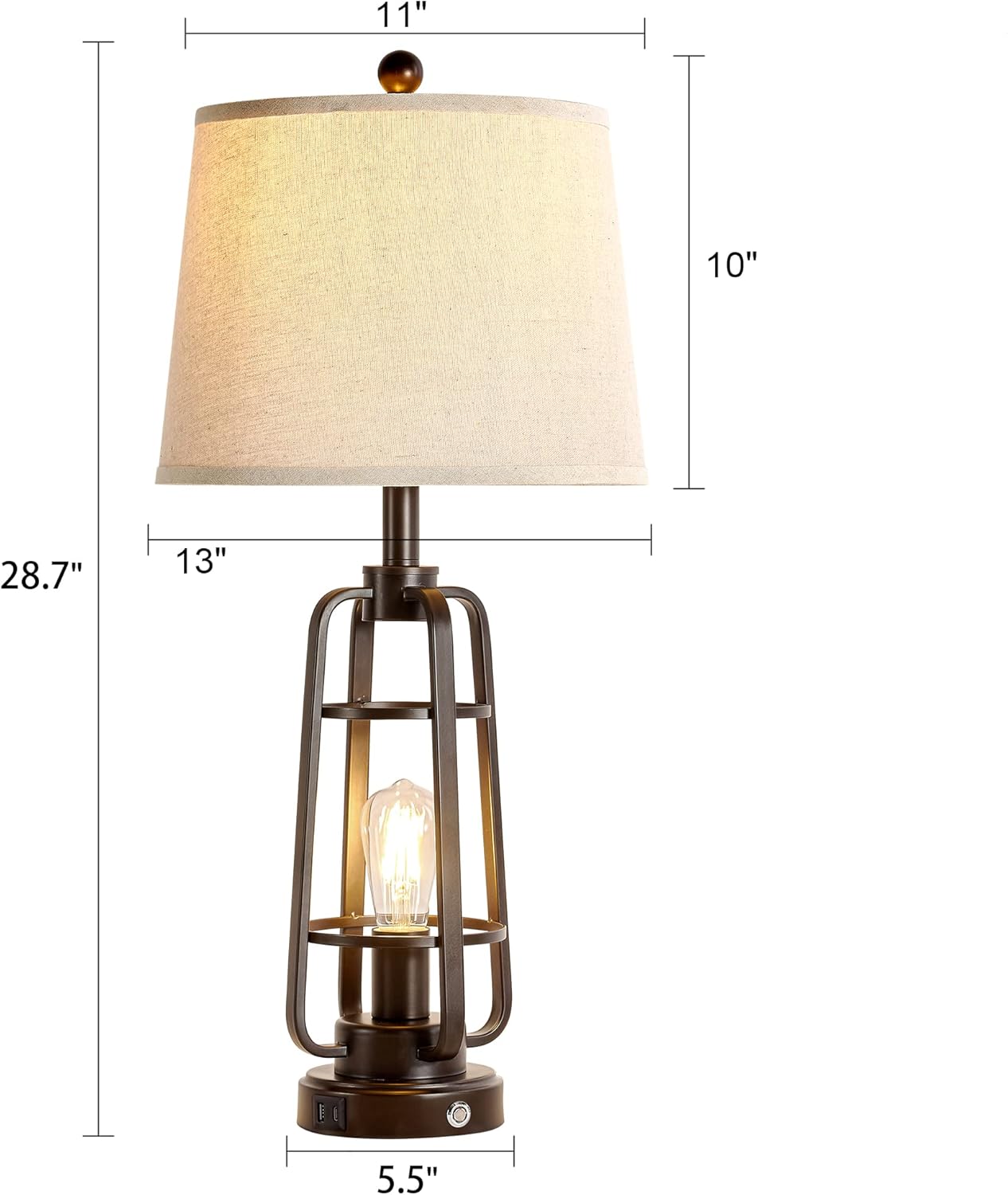 USB A+C Charging Ports: Conveniently located in the base, these USB A+C ports allow you to charge devices whether the farmhouse table lamps is on or off; perfect for nightstand lamps, work desks, or reading corners
