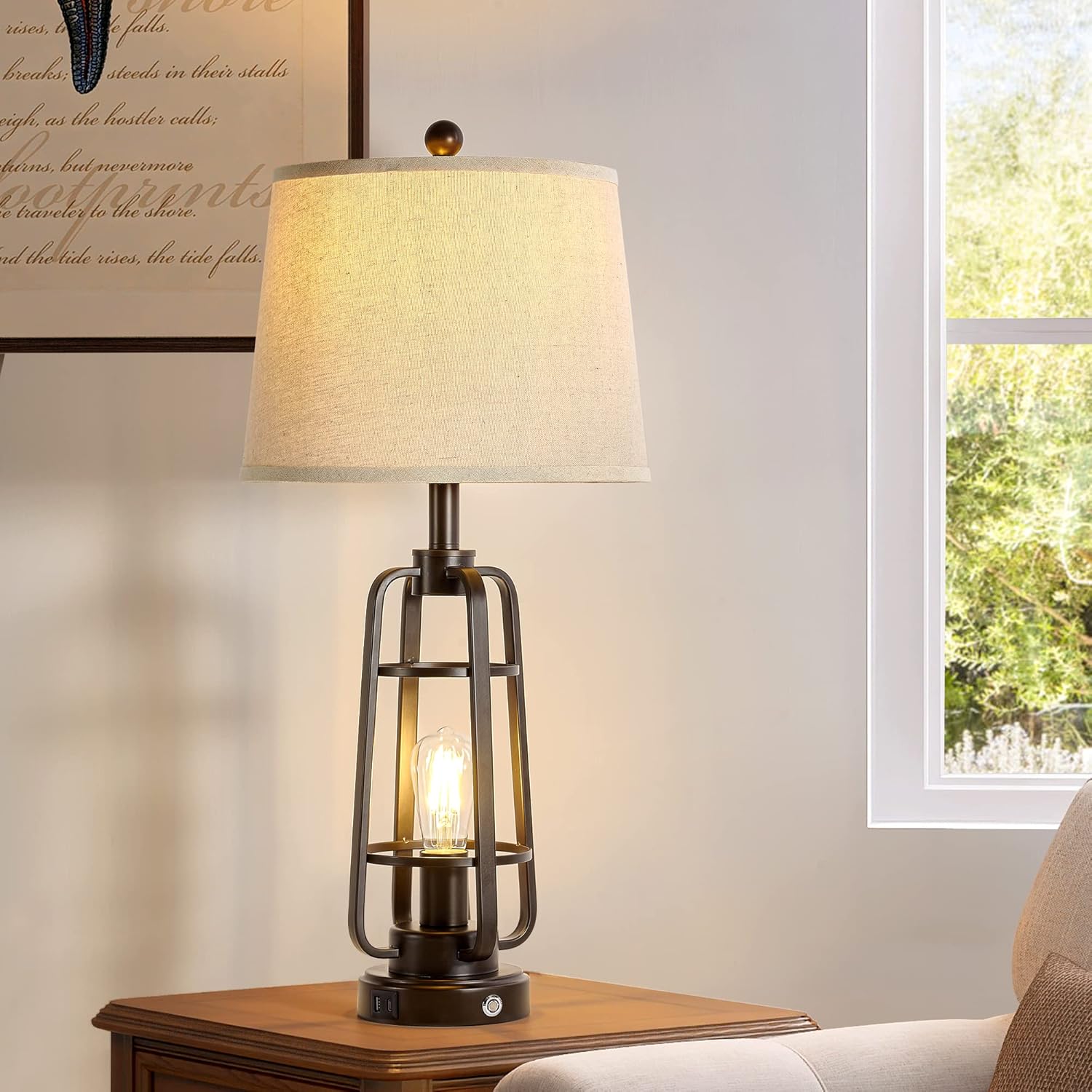 Farmhouse & Industrial Design: Our dual-lighting design provides broader illumination; the linen lampshade and sturdy metal body exude farmhouse and industrial charm; perfect for living room table lamps, bedroom table lamps, or bedside lamps