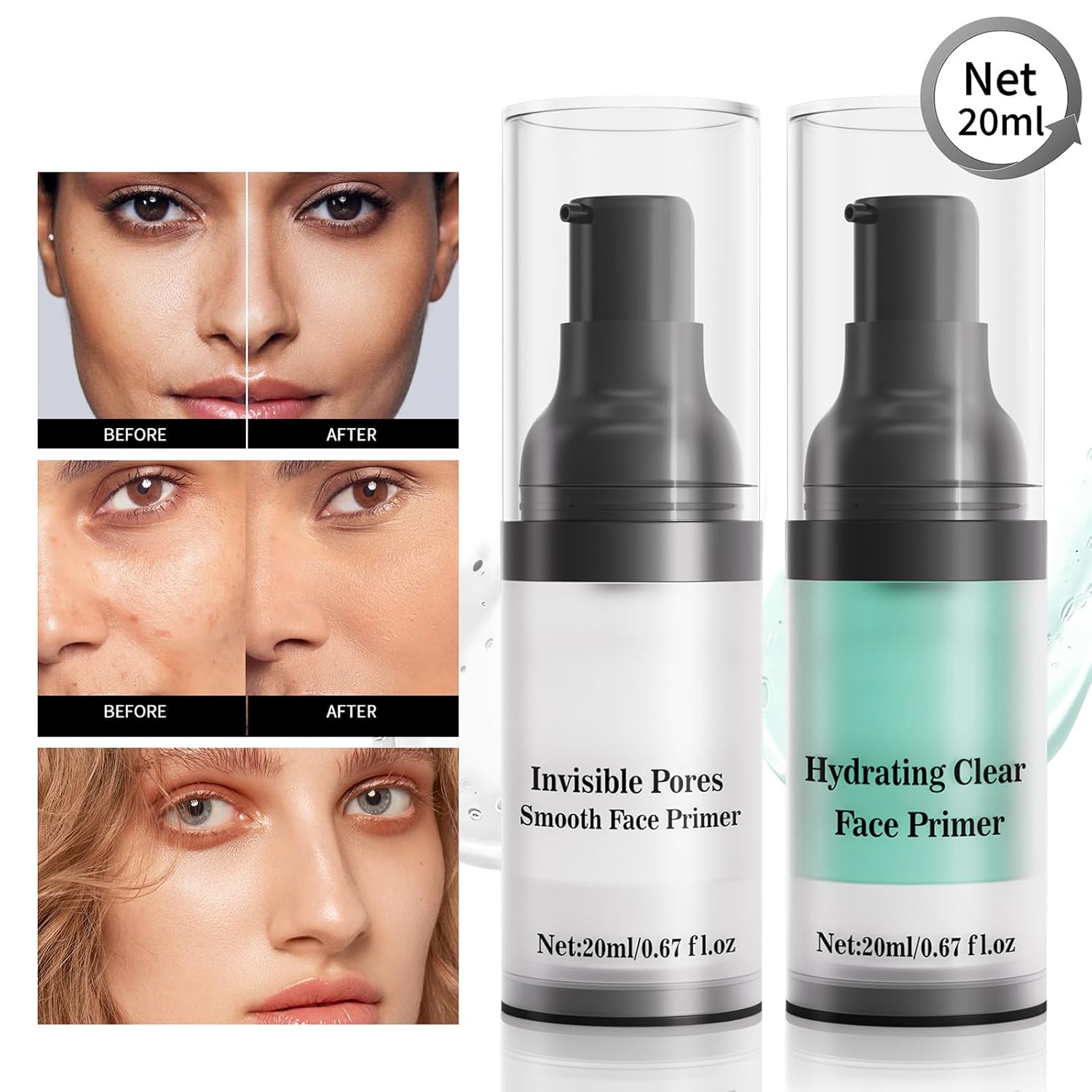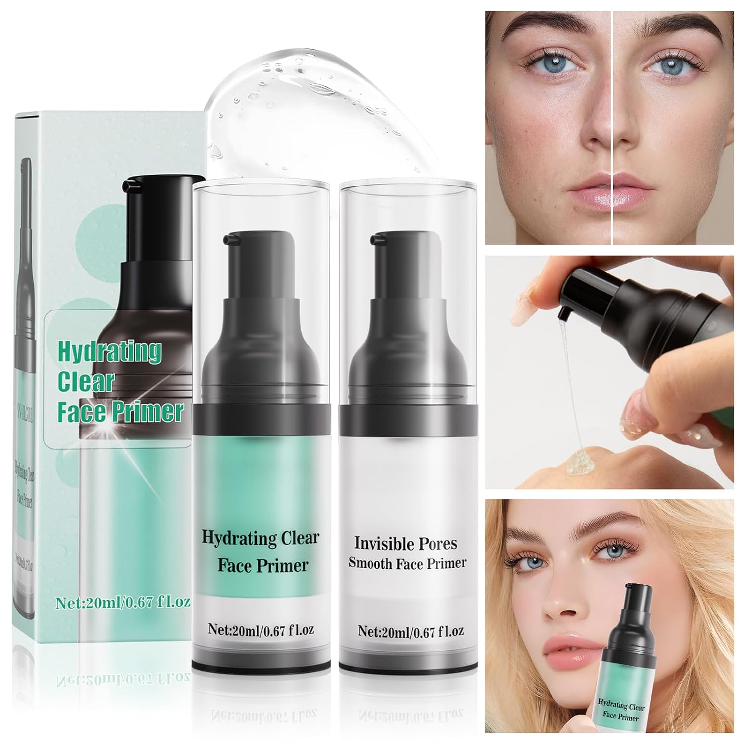 HYDRATING CLEAR FACE PRIMER: The perfect makeup starts with the perfect primer. Our hydrating primer gives you a smooth, flawless canvas for long-lasting makeup application.