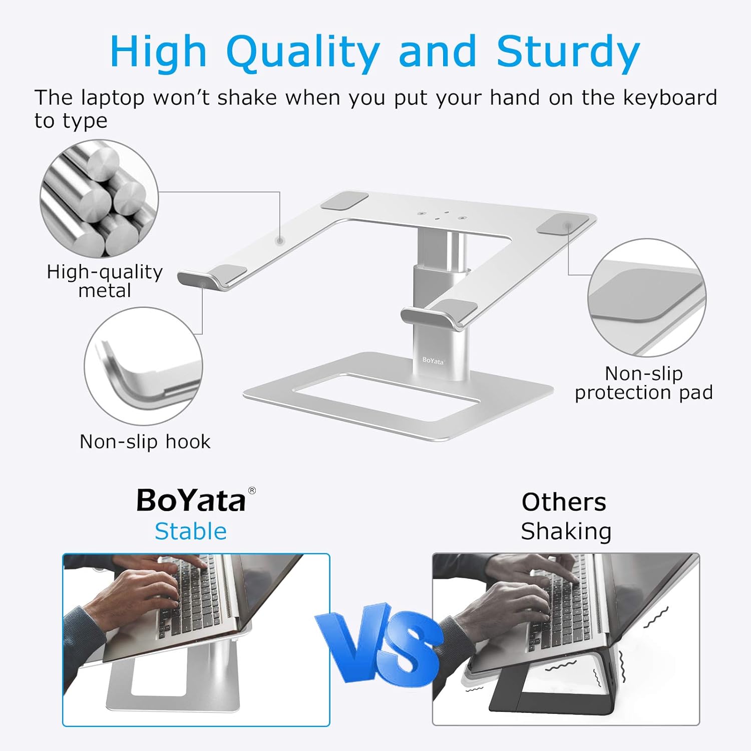 BoYata Laptop Stand, Ergonomic Aluminum Height Adjustable Computer Stand Laptop Riser Holder for Desk, Compatible with MacBook Pro/Air, Dell, Lenovo, HP, Samsung, More Laptops 11-17″