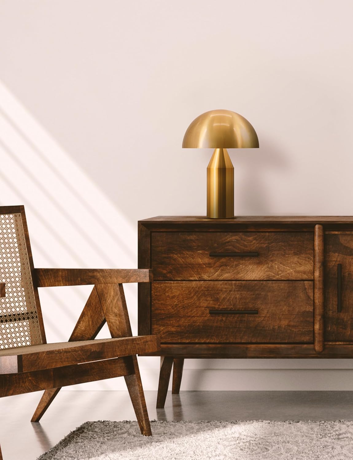Contemporary Elegance: The Brightech Venus table lamp features a captivating 9.5” metal globe shade in trendy golden hues, effortlessly complementing various decor themes from industrial to mid-century modern.It’s mushroom-like design coupled with its brass finish exudes sophistication, making a lasting impression on guests and enhances light diffusion, creating an inviting ambiance in any space. Functional and stylish, this lamp offers ambient lighting that elevates your decor.