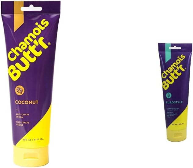Contains 8 ounce tubes of Chamois Butt’r Coconut and Eurostyle anti-chafe creams to prevent skin chafing and irritation during cycling.