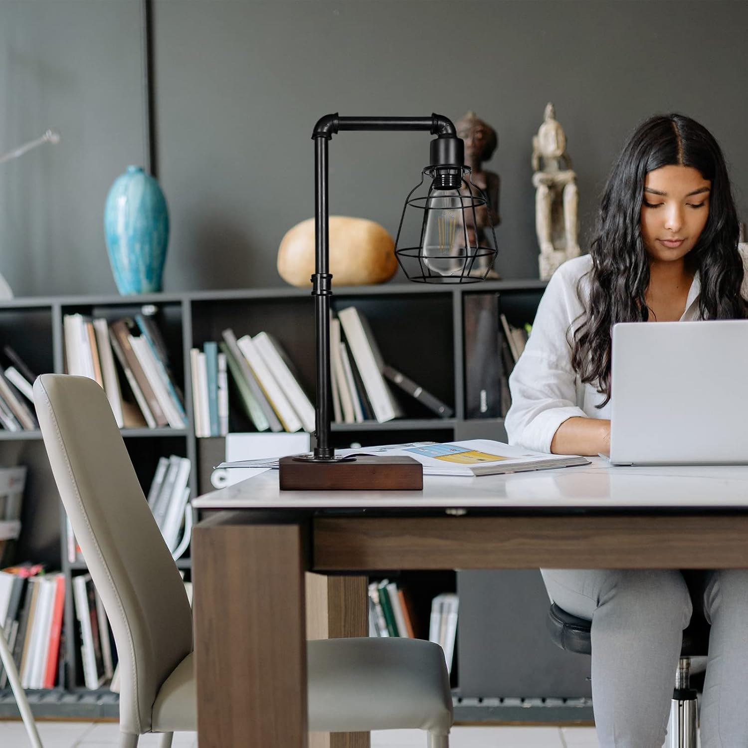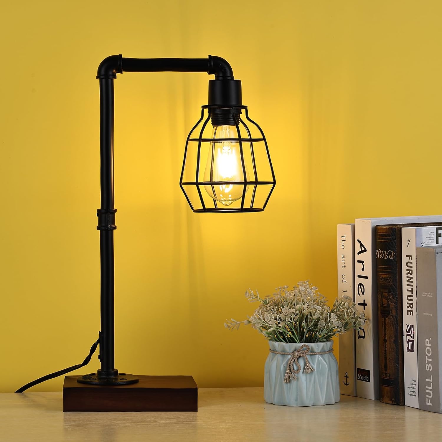 Elegant Appearance: The chic birdcage lampshade design and the simple metallic structure make the table lamp perfectly match the industrial, retro and farmhouse furniture styles, adding a decorative effect to your room.