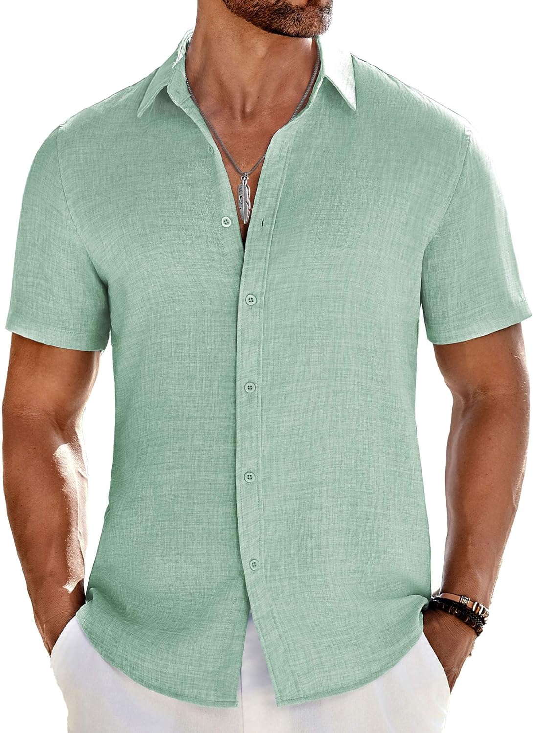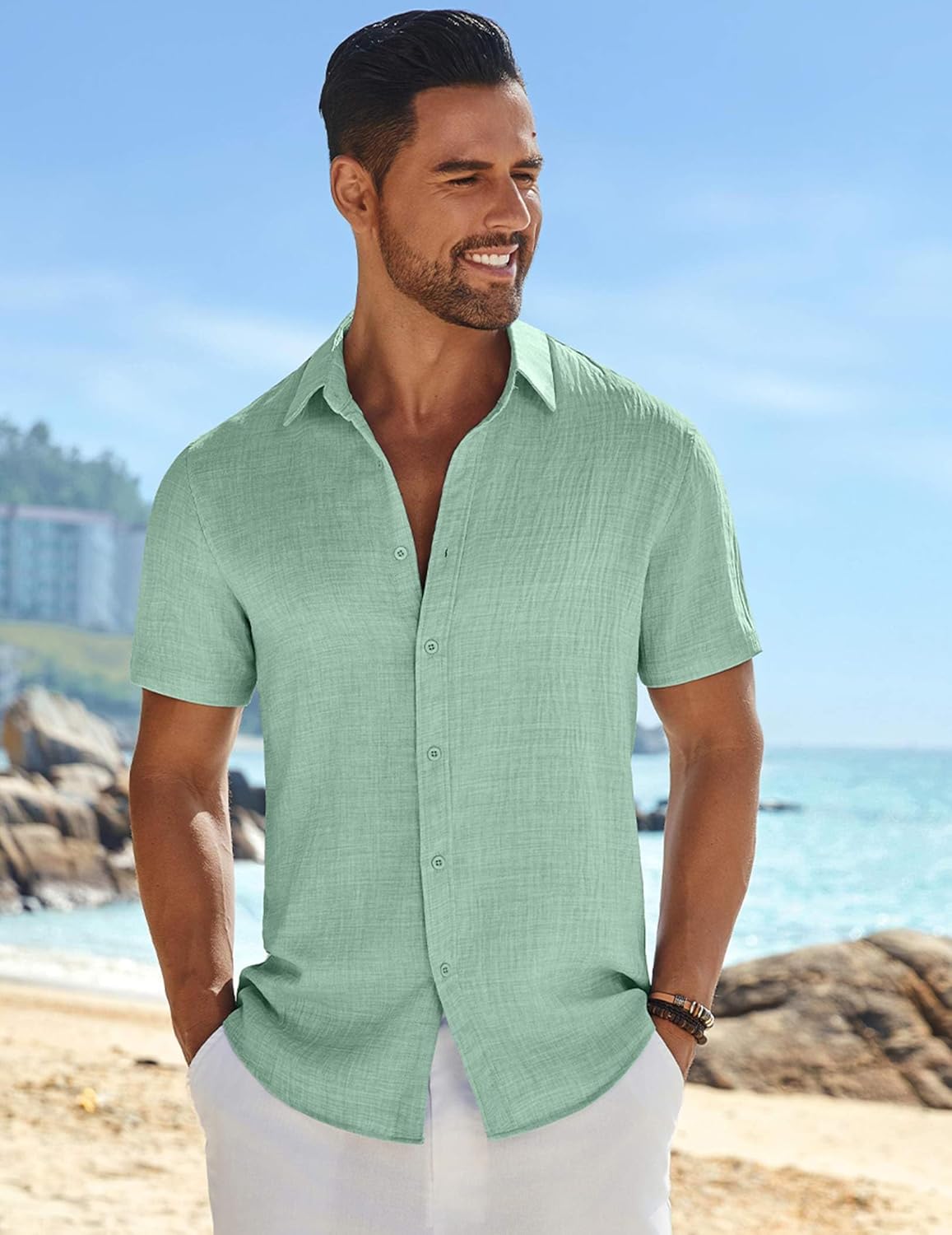 COOFANDY Mens Short Sleeve Button Down Shirts Summer Beach Shirt mens linen shirtsmens linen shirts
