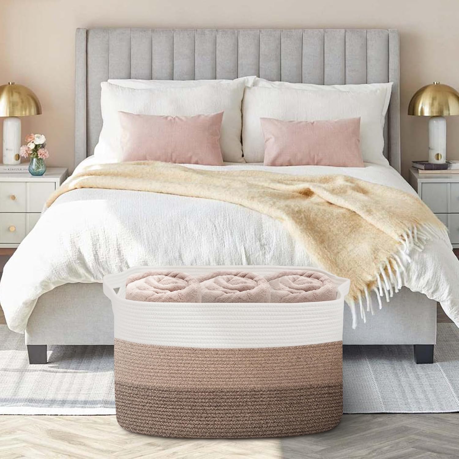 Measures 23.6 inches (L) x 15.6 inches (W) x 14.1 inches (H). This generously sized basket offers ample space to neatly declutter your living space. Whether you need to organize blankets, toys, towels, clothes, shoes, or any other items, this large storage basket can always do that trick. It can make your room more organized while adding a touch of elegance to your home decor.