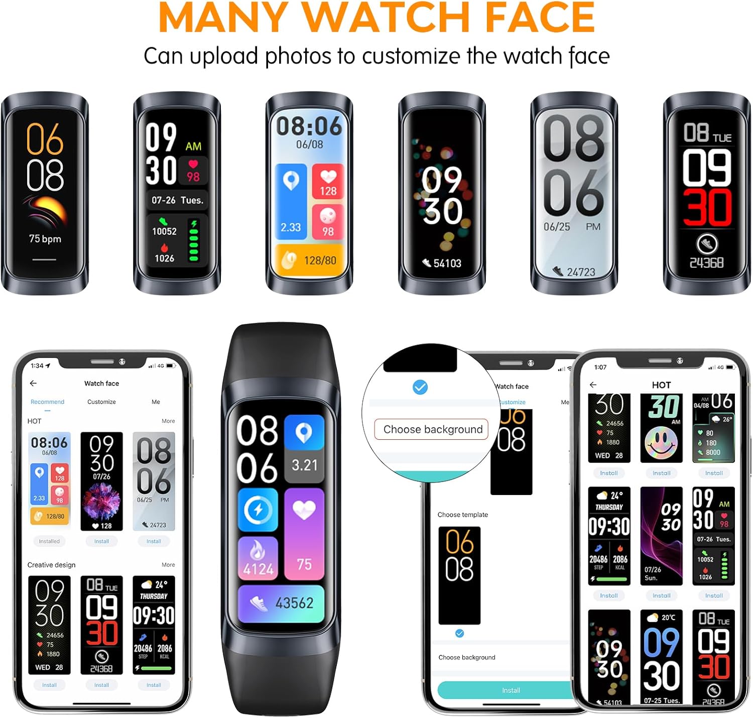 💠【Customized Watch Face & AMOLED Color Screen】One-click Controls, make this fitness activity tracker watch more convenient and simple, and high-definition display screen is more fashionable. A variety of dial styles to choose from in the APP, You can also customize the men women smart watch face with photos from your own album