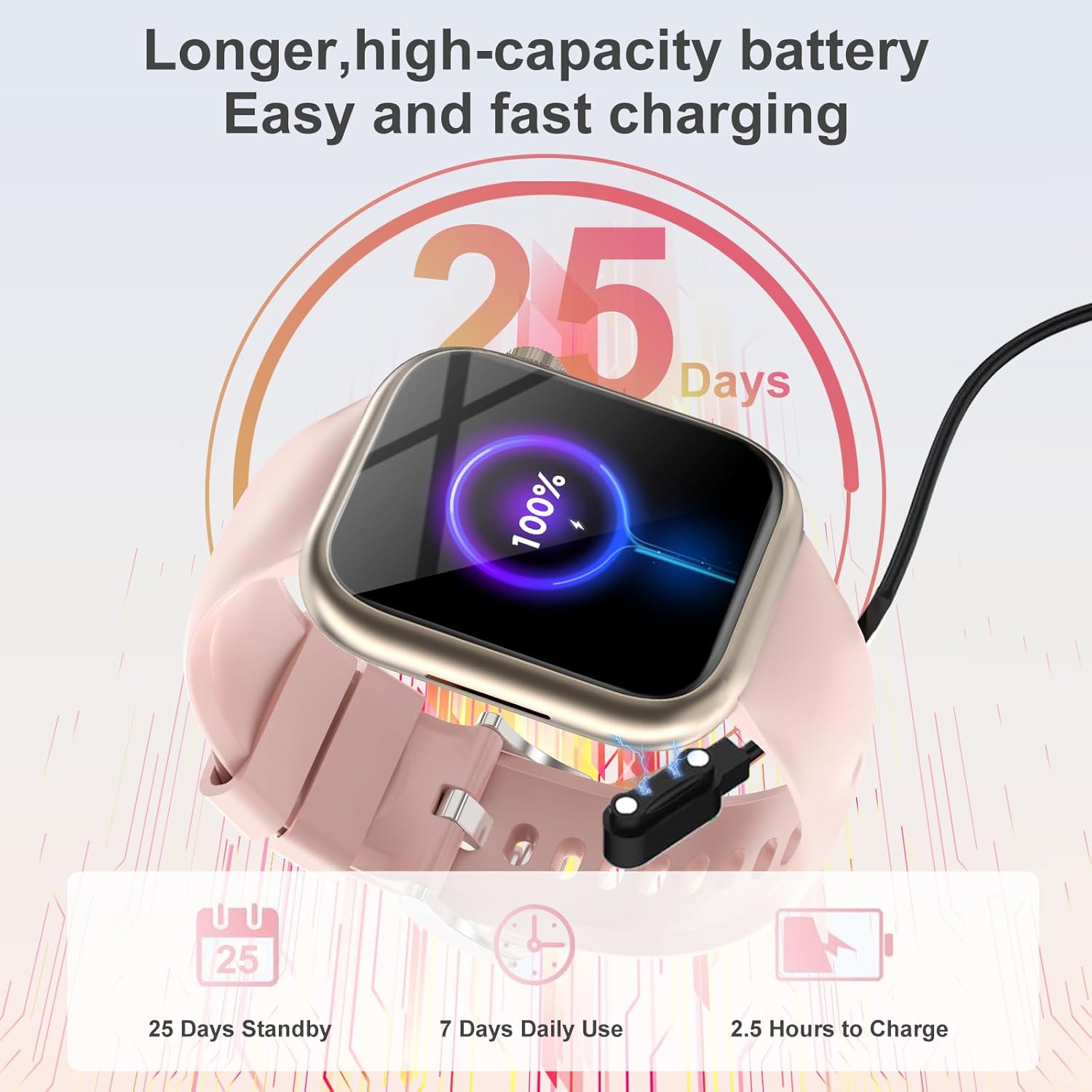 1.83″Large HD Color Screen & DIY Dials:Women smartwatch features a 1.83-inch high-definition full touch screen,which providing you with a better visual and user experience.it also offers over 120+ online personalised dial to choose from, you can also create DIY photos to customise your personalised watch face.smartwatch is designed with Bluetooth 5.2, which enable it operates faster and the data transmission is more stable.