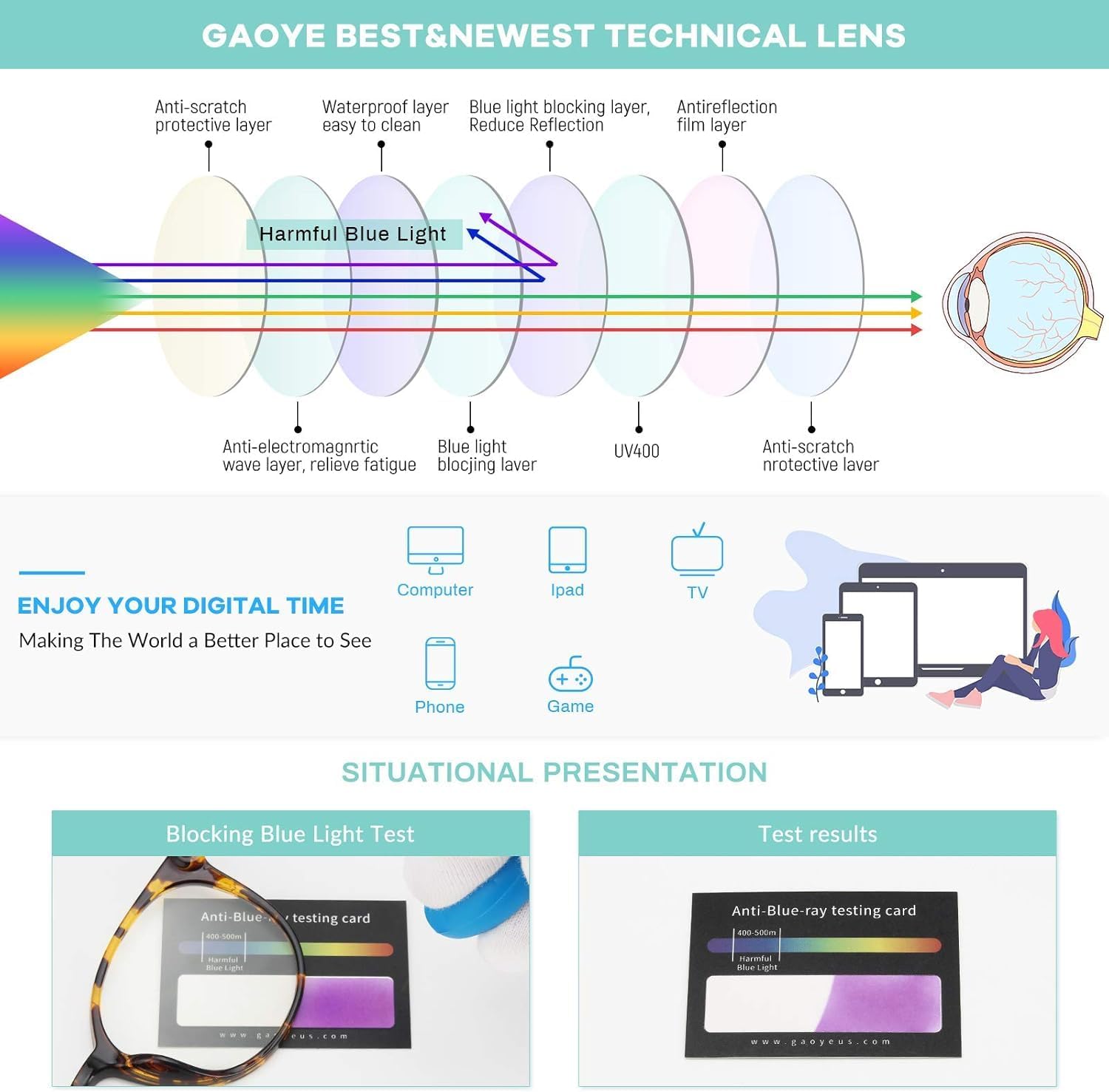 [Bluelight Glasses] Blue light blockers with UV400 lenses block 100% harmful blu-ray & UVA/UVB rays, reduce discomfort from vedio, tv, phone, laptop, computer gaming or working under fluorescent lights; Protects your vision, help you anti glare, headache, eye strain, dry eye and sleep better