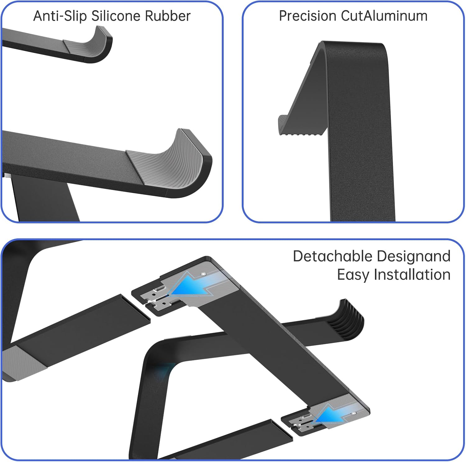【DETACHABLE & PORTABLAE】 : This laptop holder is designed with 3 primary structural components and 2 corner connectors, enabling effortless snap-together assembly without complex instructions. Its space-efficient modular design eliminates bulky storage requirements while providing robust functionality, making it ideal for travel-ready portability and compact storage.