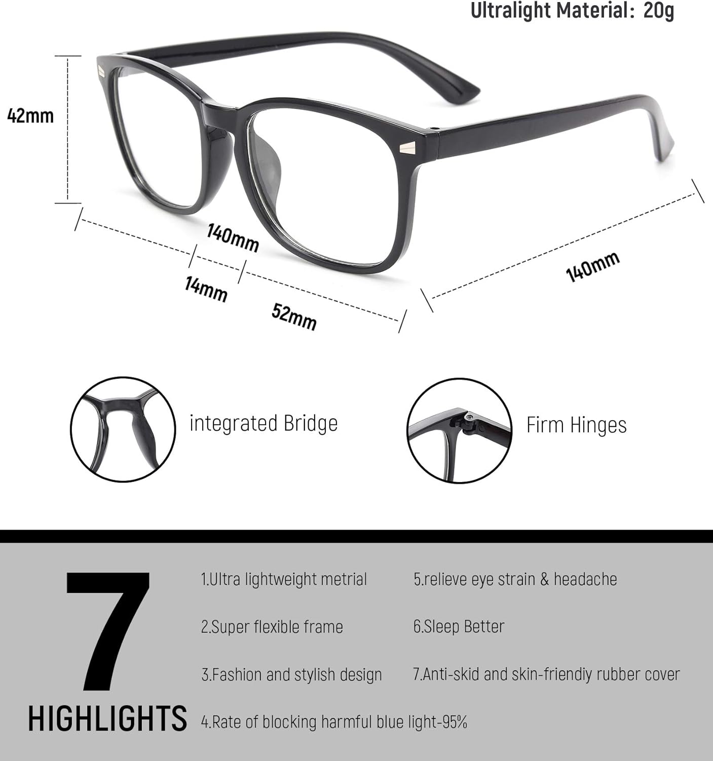 Flexible Frame: The frames of these blue-light glasses are made of extremely durable and lightweight materials. Their high quality ensures long-lasting use, making them perfect for computer screen protection.