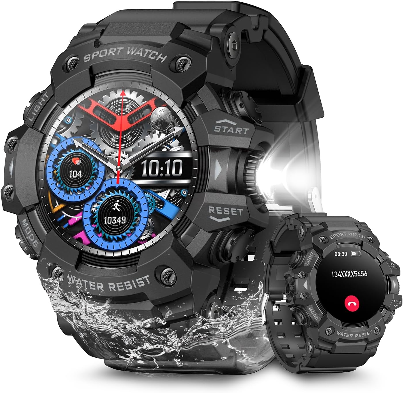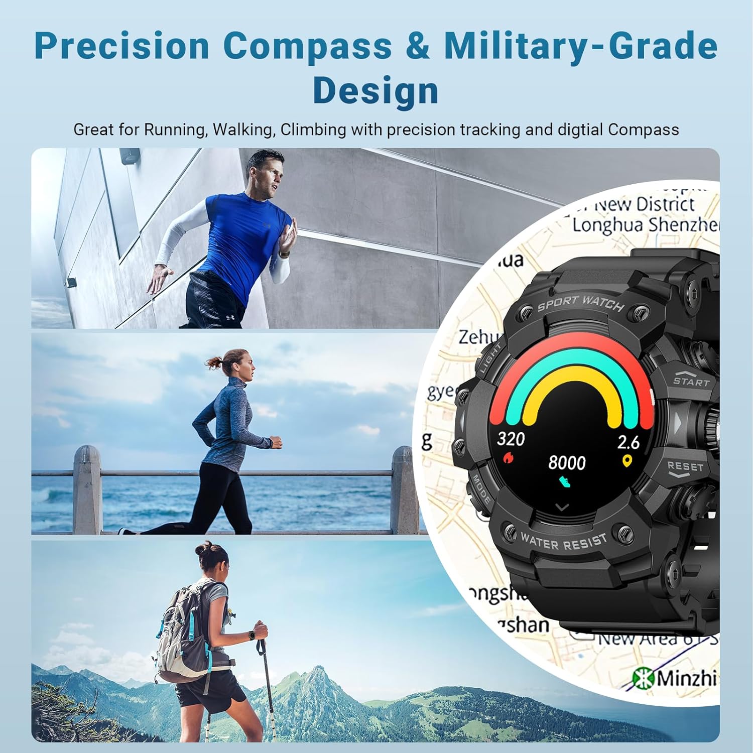✅ Built Military Tough for Any Adventure: Conquer extreme conditions with this military-grade smart watch for men. Its rugged composite case survives various scenes of real testing. Fearless against water, dust, and shocks – the ultimate tactical smart watch for men built for the toughest expeditions.