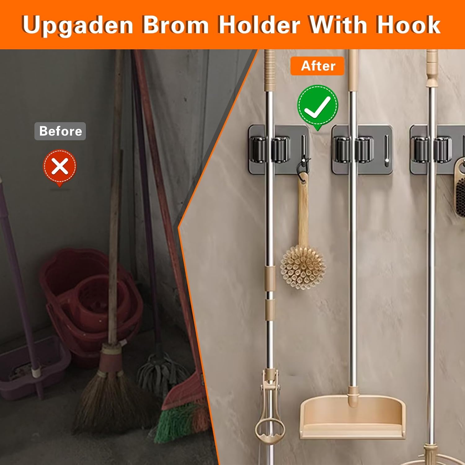📏 🌟wall mounted mop broom clip hangers is easy and convenient to install, just stick on the wall with strong self adhesive which firmly keeps your mop in place and guards them from falling off.