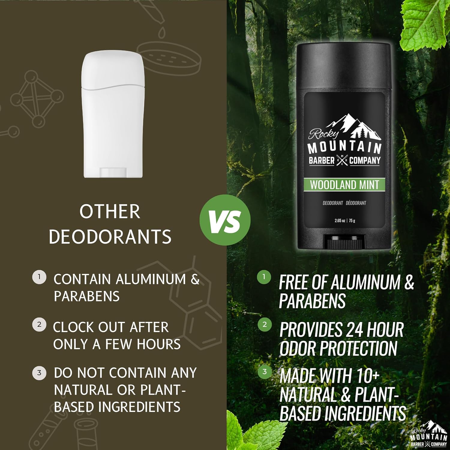 A Classic, Masculine, Peppermint Scent – We use peppermint essential oil and a fragrance oil free of parabens and phthalates to achieve our signature Woodland Mint scent, providing you with a clean and refreshing mint scent that lasts all day long.