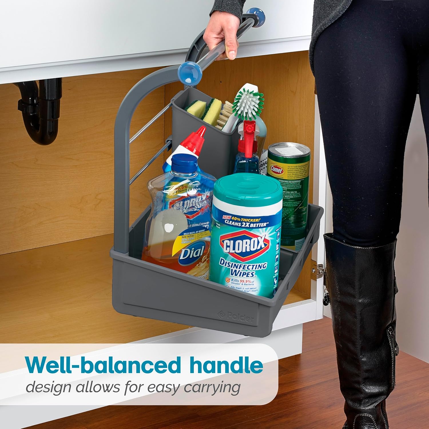 Organization and Storage: Keep your home tidy and organized with the Polder Under Sink Storage Caddy. Providing ample space to keep stored items neat, organized, and easily accessible, this organizer is ideal for the kitchen or bathroom.