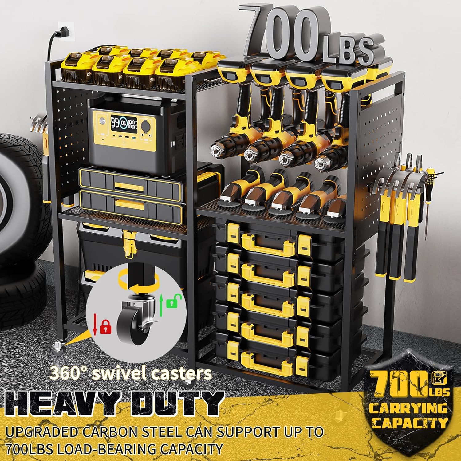 【DURABLE & STURDY】Built to withstand heavy loads, our tool cart on wheels is crafted from enhanced high-density metal and coated with durable alloy steel. Supporting over 700LBS without bending, it’s ideal for garages, workshops, warehouses, homes, and shops.