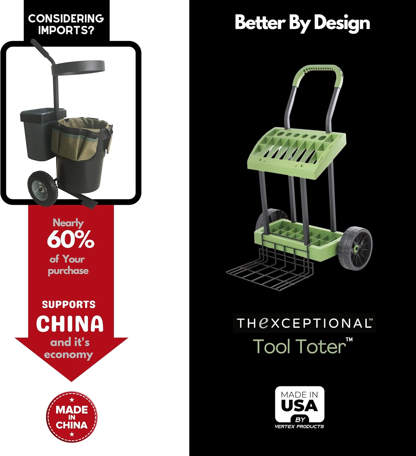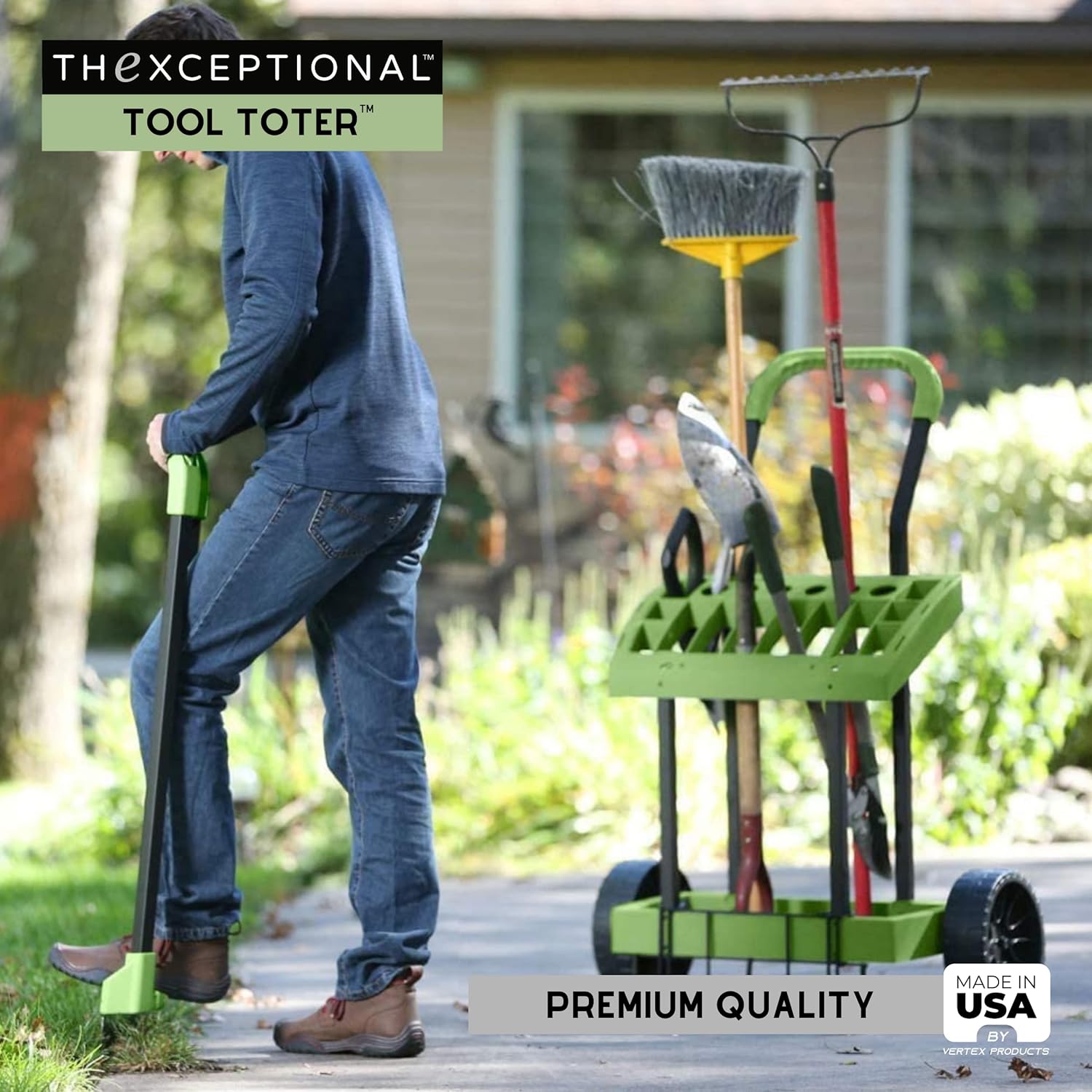 STORE, ORGANIZE & MOBILIZE your garden tools and supplies, the tool toter yard and garden cart feature a heavy storage rack on wheels that stores up to 18 tools in just 2 sq. ft. , premium garden cart holds the tools and supplies you need while maintaining your lawn or garden