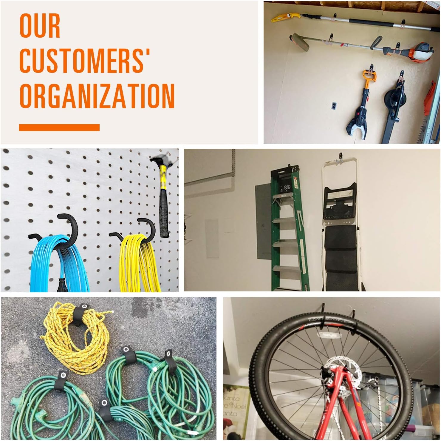 【Valuable Pack】 SMARTOLOGY hook set come with 12 hooks in Total. Two each of 5 types wall mount hooks and one type screw in ceiling bike hook. Unlike other sells, our hook combination also include extra 3 PCS hook and loop extension cord storage strap. Ranging sizes to handle utilities. Expanding your garage with our curated selection of storage hook set.