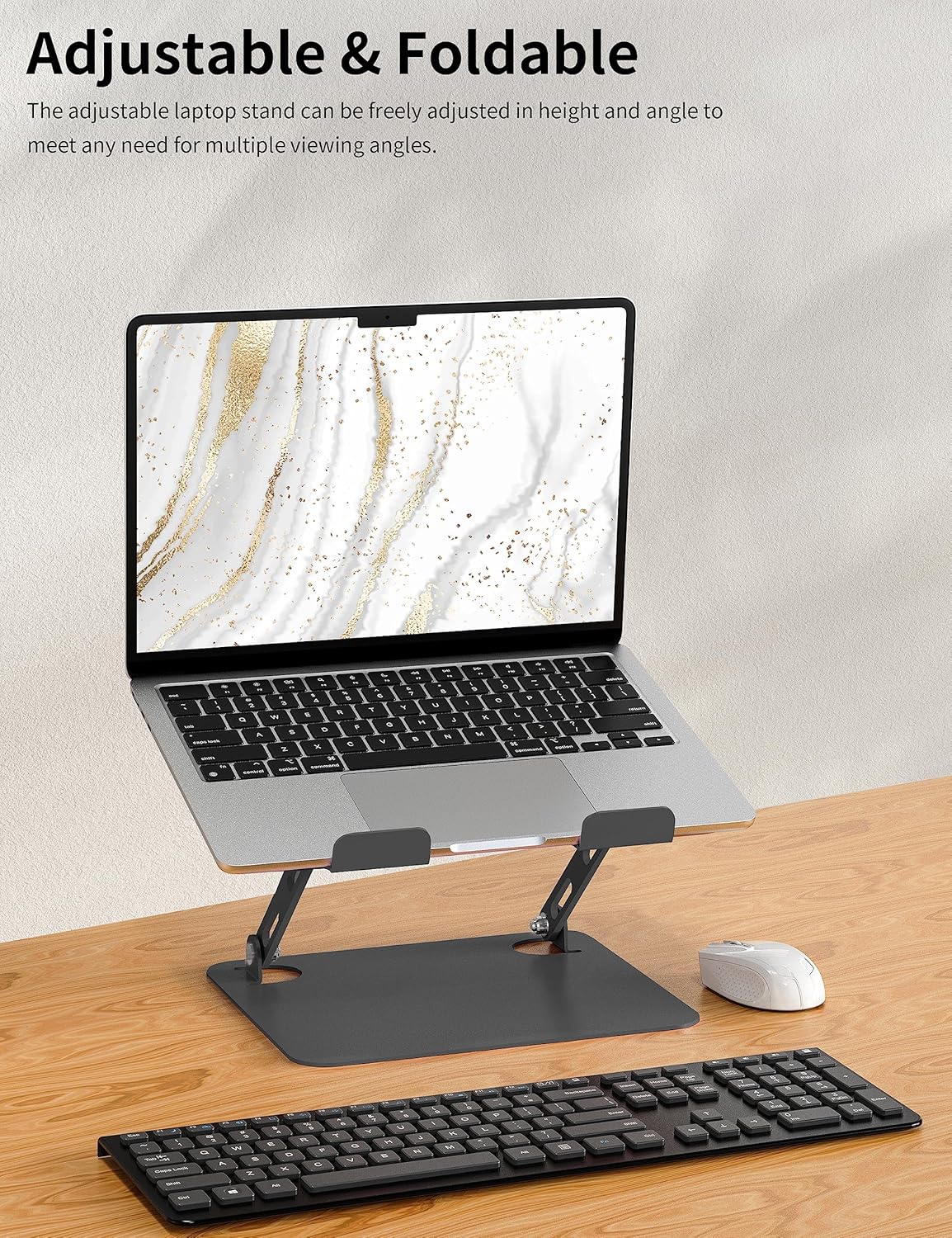 Adjustable & Foldable – The adjustable laptop stand makes it more ergonomic, can be freely adjusted in height and angle to meet any need for multiple viewing angles. The stand with foldable design is easy to carry and easy to store, making your office desktop clean.