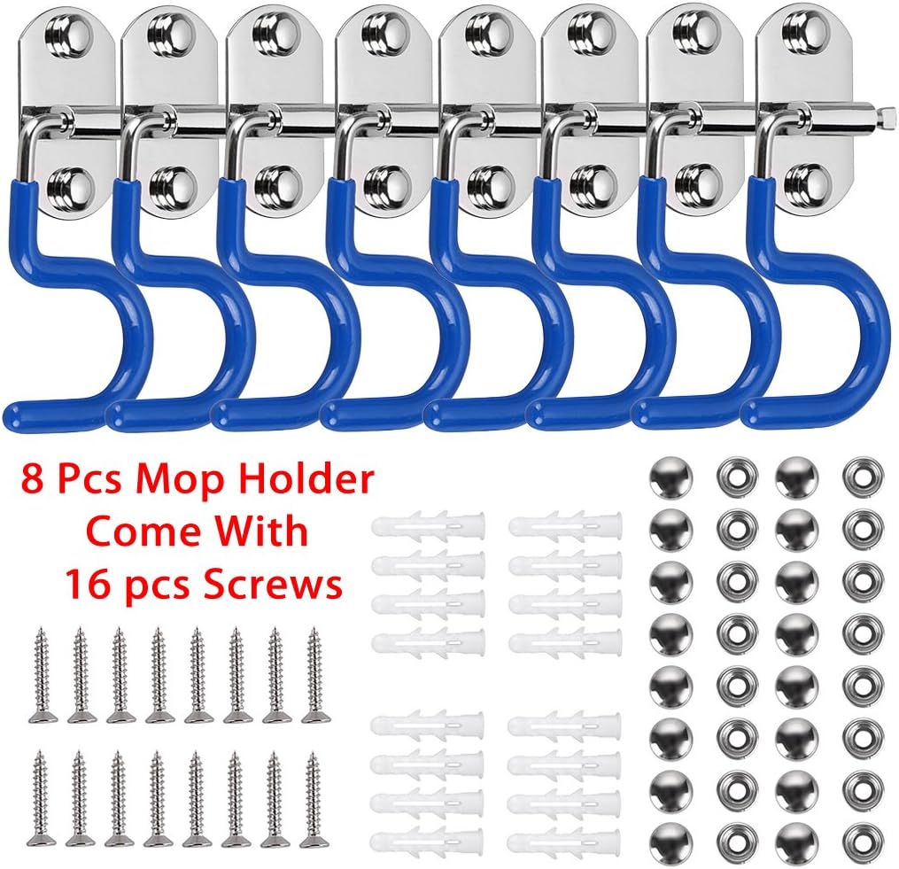 HEAVY DUTY UTILITY HOOKS- This mop and broom hanger to be built very well. The stainless steel body is solid, along with the S-hooks. In addition to brooms and mops, use a couple in your garage or gardening shed to store rakes, shovels, etc. One hooks on each unit give you plenty of places to hang buckets, rags, or any other items that can be hung on a hook.