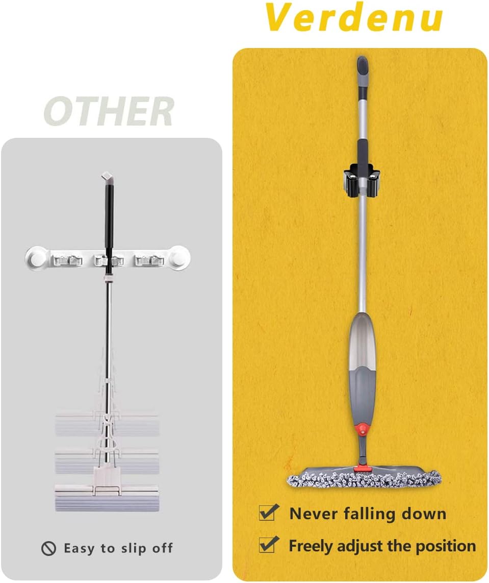 Space-saving: Can be attached individually and placed individually. Once you clamp the broom handle into the triangular clip, it automatically adjusts to the different thicknesses of the handles and locks it without slipping.