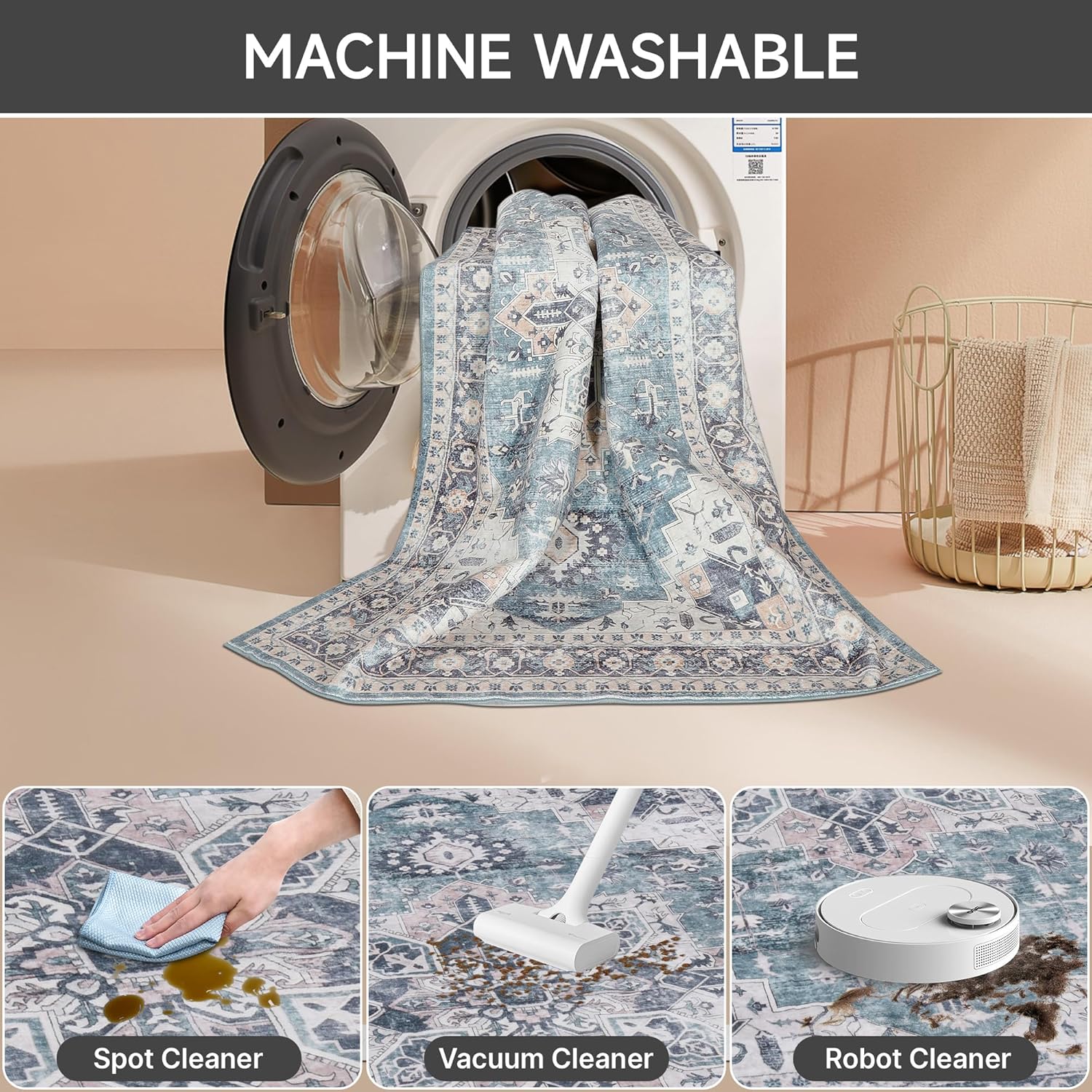 Machine Washable: Our printed area rugs are designed to be easily maintained with convenient washable care. Simply toss them in the machine for a quick wash, then dry using the air-only setting without heat. Additionally, the area rug can be cleaned daily with a vacuum cleaner or wiped down with a damp rag.