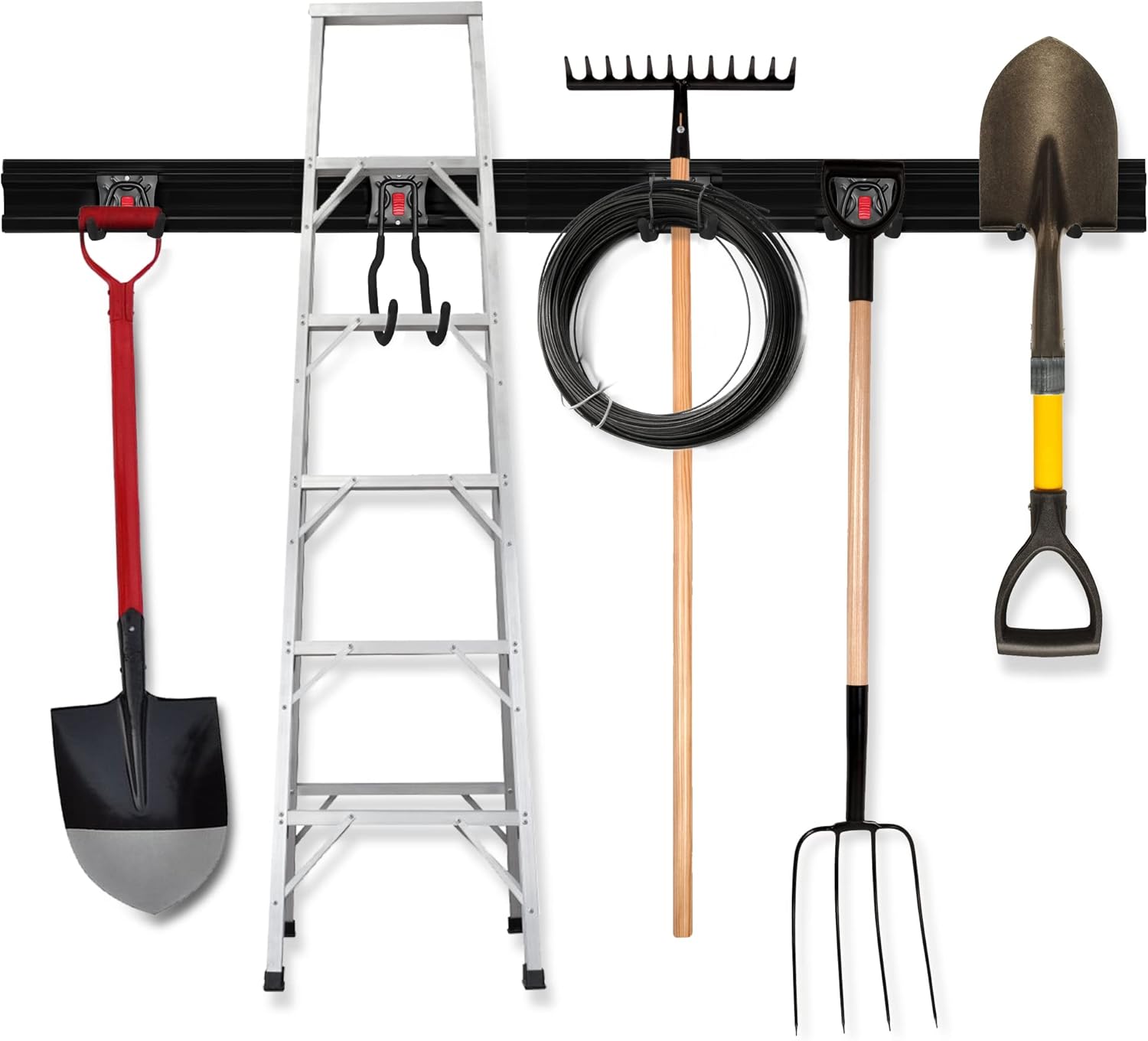 Multi Purpose: Perfect for hanging your garage equipment, garden tools, heavy stuffs like chairs, strollers, rakes, shovels, ladders and more. Rubber-coating can prevent the tools from being scratched and slipping