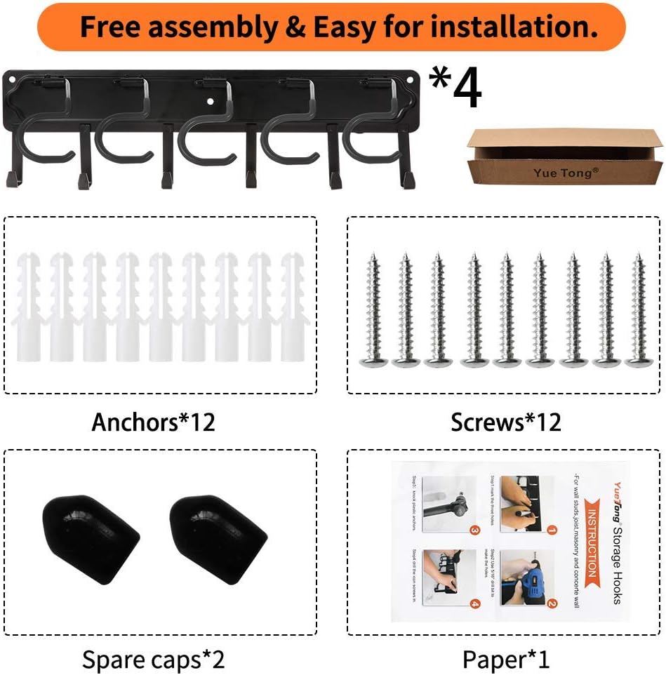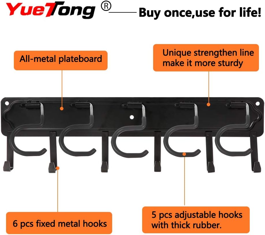 【Free Assemble】YueTong wall mounted broom holder you get will be a whole body with hooks assembled,so you can install it directly with the recommended drill size according to the installation paper.