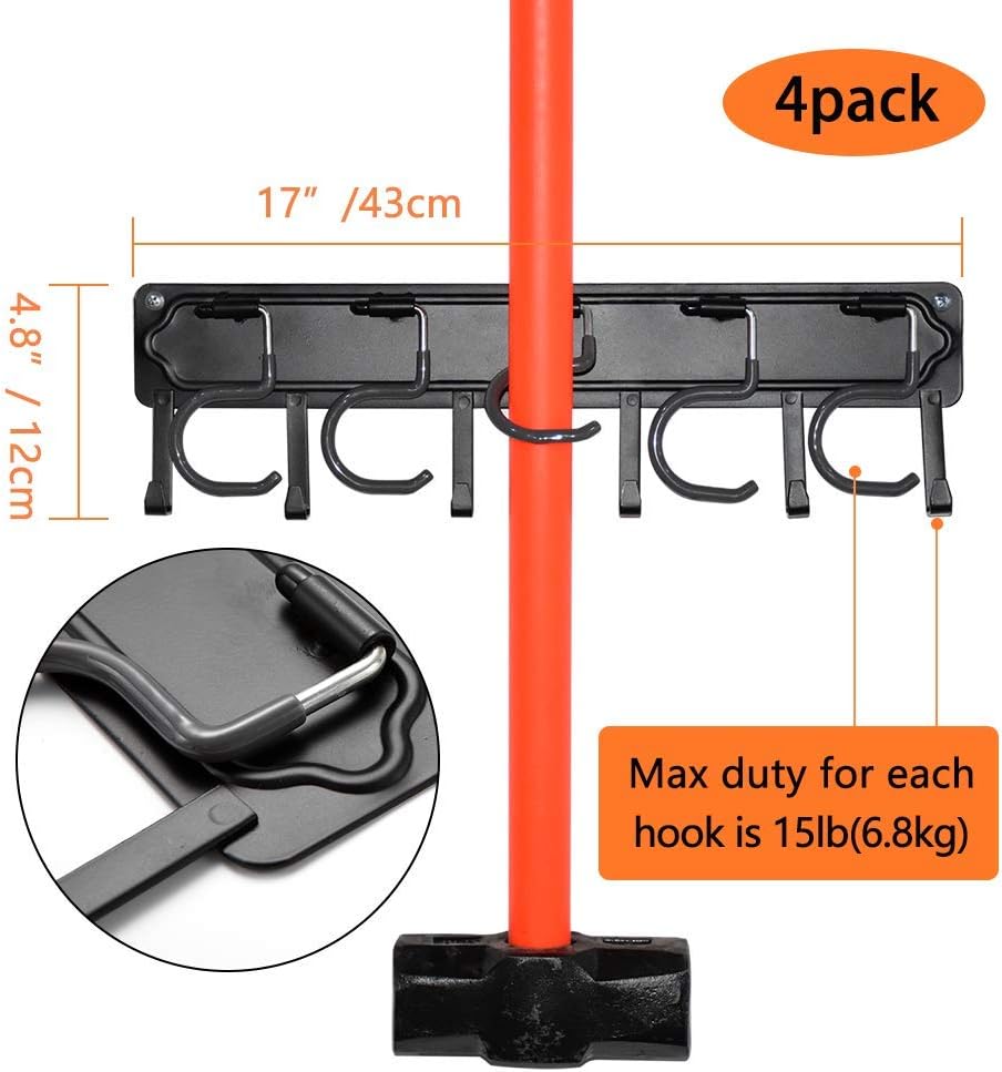 【All-Metal】The size of each metal backboard is 17*4.8 inch,with 5 pieces orange rubber maid hooks and 6 pieces black fixed hooks on each pack,It’s a good choice for garage organization like garden shears.This is 4 pack,totally 68” long.