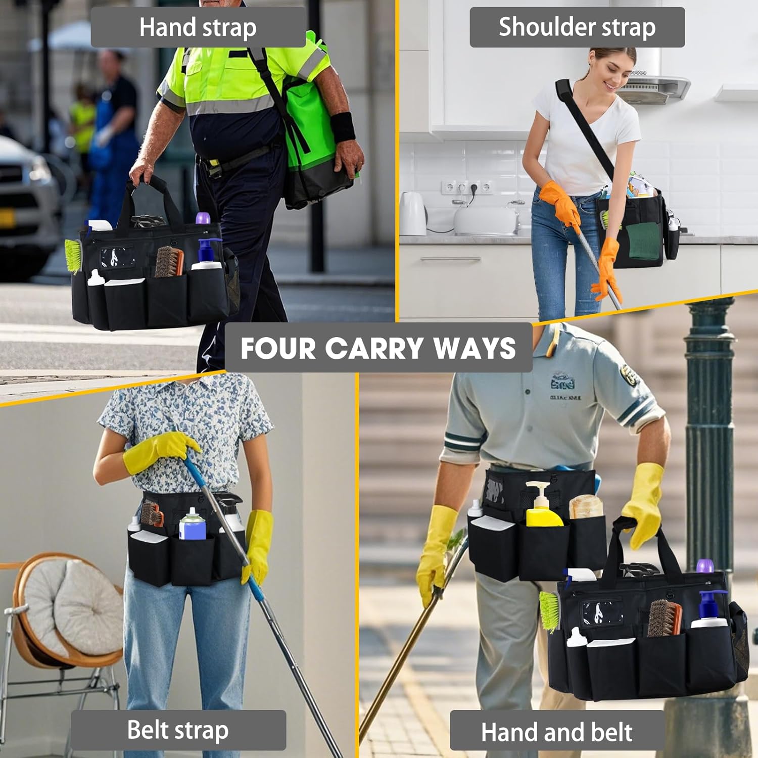 Large Capacity Storage: The wearable cleaning bag external size: 14.96″ x 9.25″ x 10.82″; Professional partition design makes housework more organized and easier. This cleaning organizer bag is good for cleaners, housekeepers.